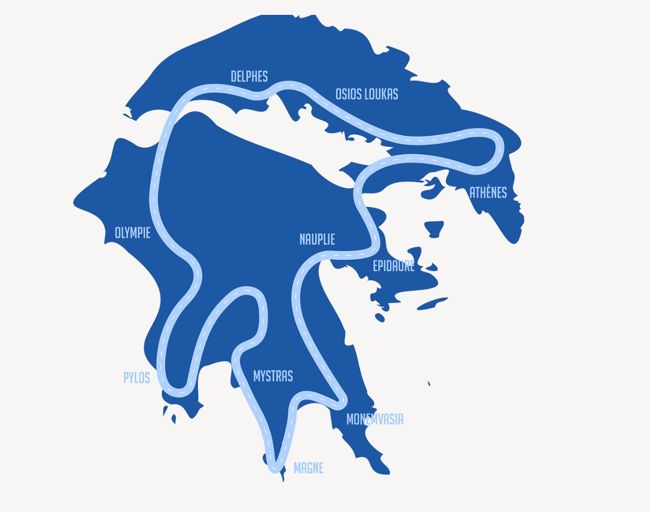 The route unfolds across the legendary Peloponnese — the cradle of classical civilization — before sweeping around the Gulf of Corinth, tracing coastlines shaped by myth and history.